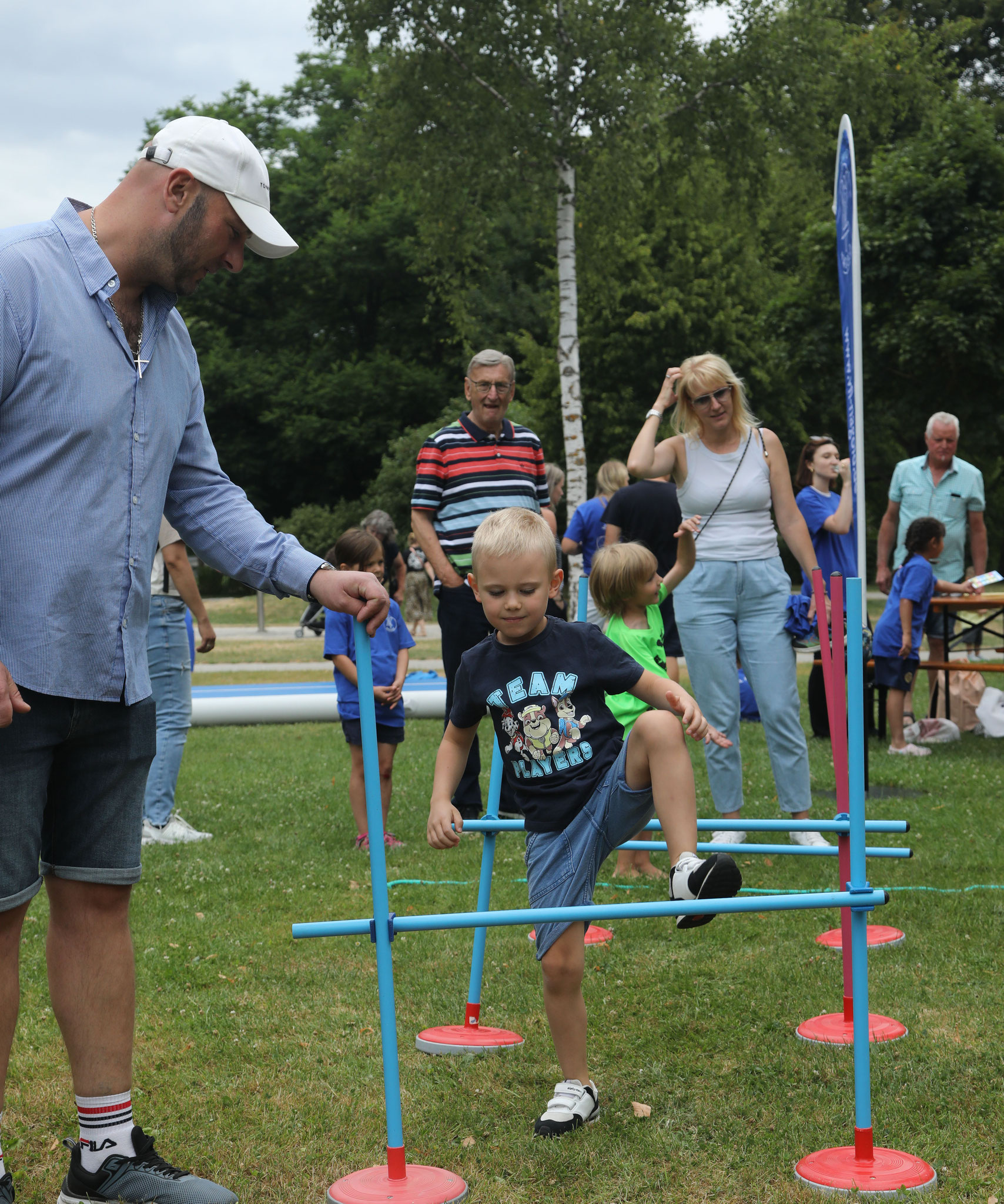 Die wurden von den teilnehmenden Abteilungen des über 1.700 Mitglieder zählenden Sportvereins mit großem ehrenamtlichen Engagement betreut – damit vor allem die Kids richtig Spaß hatten. Und vor allem die Helfer waren froh, dass es dieses Mal nicht ganz so hochsommerlich heiß war wie in den Vorjahren. „Das Wetter ist perfekt zum Sport machen“, stellte beispielsweise VfL-Geschäftsführerin Ulrike Fürgut fest.