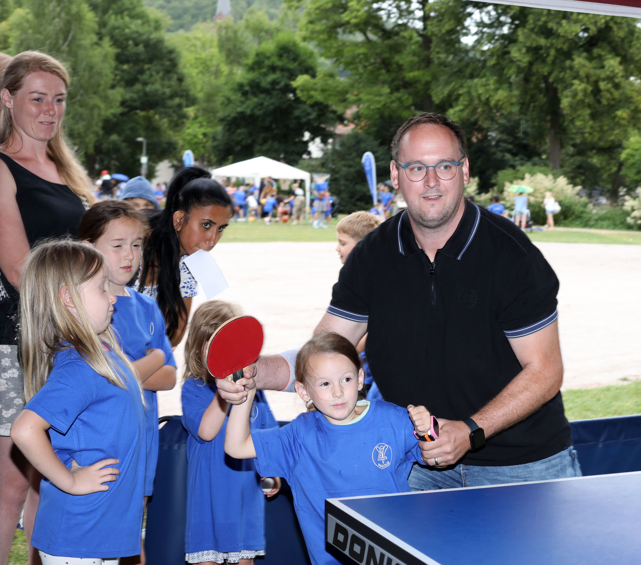 Neun Abteilungen des VfL Nagold boten jetzt abwechslungsreiche und spannende Spielstationen. Beteiligt waren die Kindersportschule Kiss, die Abteilungen Turnen, Basketball, Tischtennis, Leichtathletik, Badminton, Karate, Handball, Wintersport – und erstmalig auch die VfL-Judokas. Die einzelnen Sparten boten an ihren Stationen jeweils Einblicke in ihren Sport, immer kindgerecht und so, dass möglichst jedes Kind auch schnelle Erfolgserlebnisse hatte. Klar gab es erneut die eine oder andere technische Finesse: Der Tischtennisroboter und die beiden Badminton-Aufschlagmaschinen liefen quasi ununterbrochen und kamen richtig gut bei den Kids an.