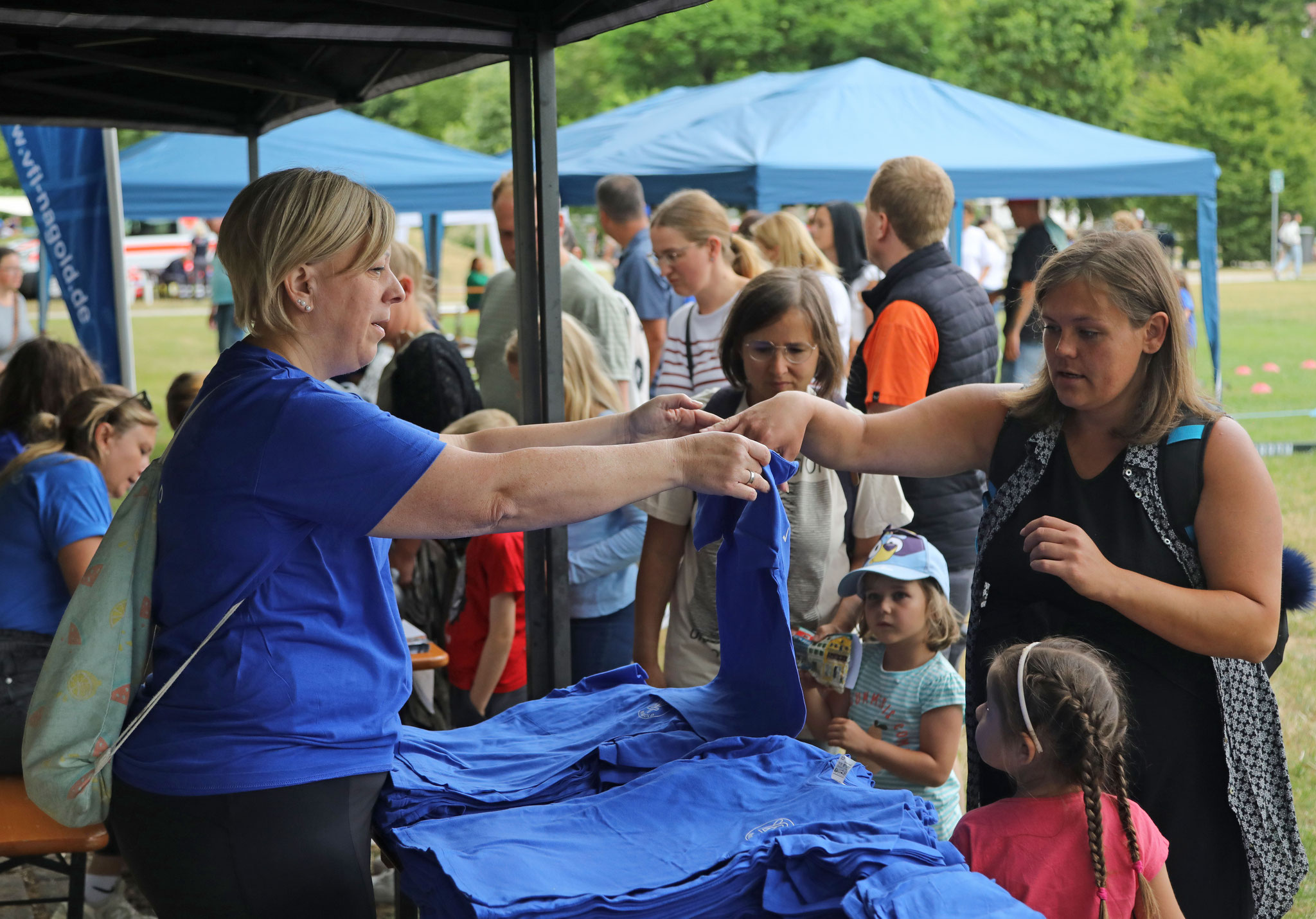 Jedes Kind erhielt bei seiner Anmeldung erst mal eine Stempelkarte und ein blaues VfL-T-Shirt – und wenn alle Stationen durchlaufen und mit einem Stempel versehen waren, winkte zu Belohnung ein Eis.
