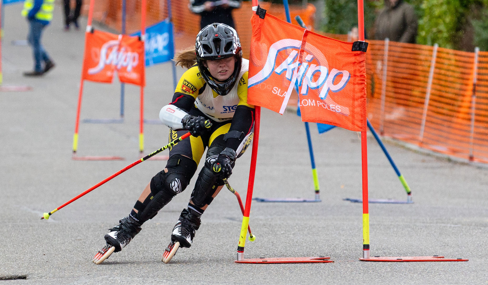 Am Samstag wurde der Riesenslalom auf einer der spektakulärsten Strecken im Inline Alpin ausgetragen. Der erste Lauf konnte noch bei trockenen Bedingungen durchgeführt werden. Die zwei Läuferinnen des VfL Nagold positionierten sich mit Platz 1 für Luna und Platz sieben für Lya hervorragend.